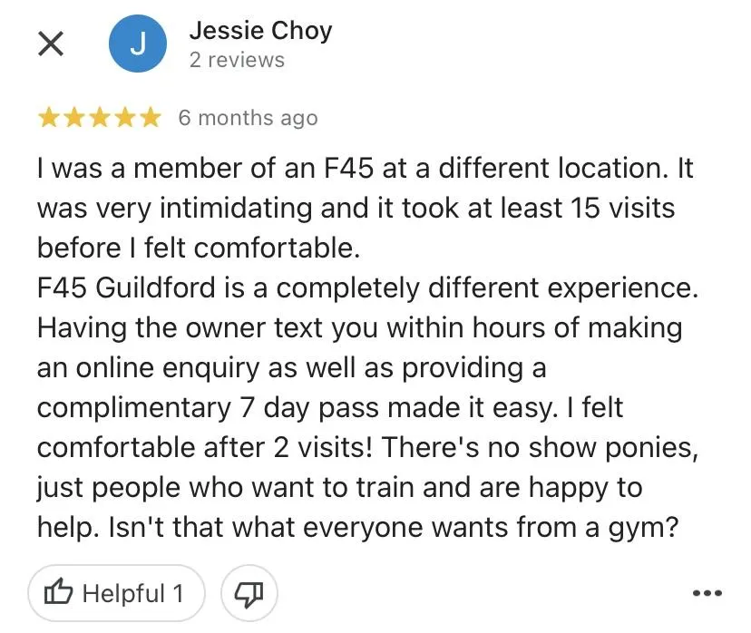 Whatever your level of fitness - whether you're a frequent gym bunny or complete fitness newbie, F45 was designed to get you RESULTS! And you'll leave every visit with a smile on your face!